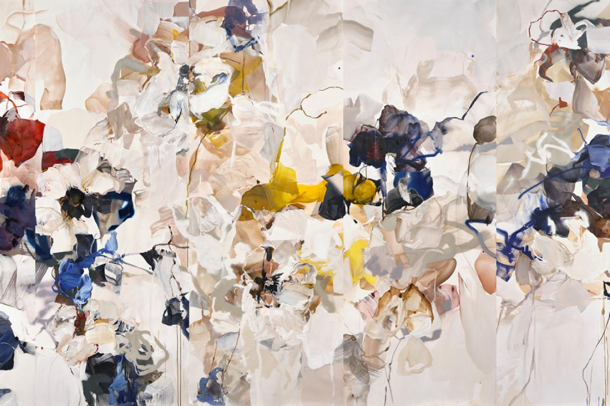 Vancouver-based artist Bobbie Burgers is known for her large-scale floral works that fuse expressive abstraction with themes of fleeting beauty and quiet strength. Her paintings, collages, and prints capture the tension between decay and vitality, immersing viewers in a sensory world of colour and form. By reimagining familiar floral motifs, Burgers engages with the long tradition of still-life in Western art while creating a distinct visual language that challenges conventional ideas of femininity and domesticity.